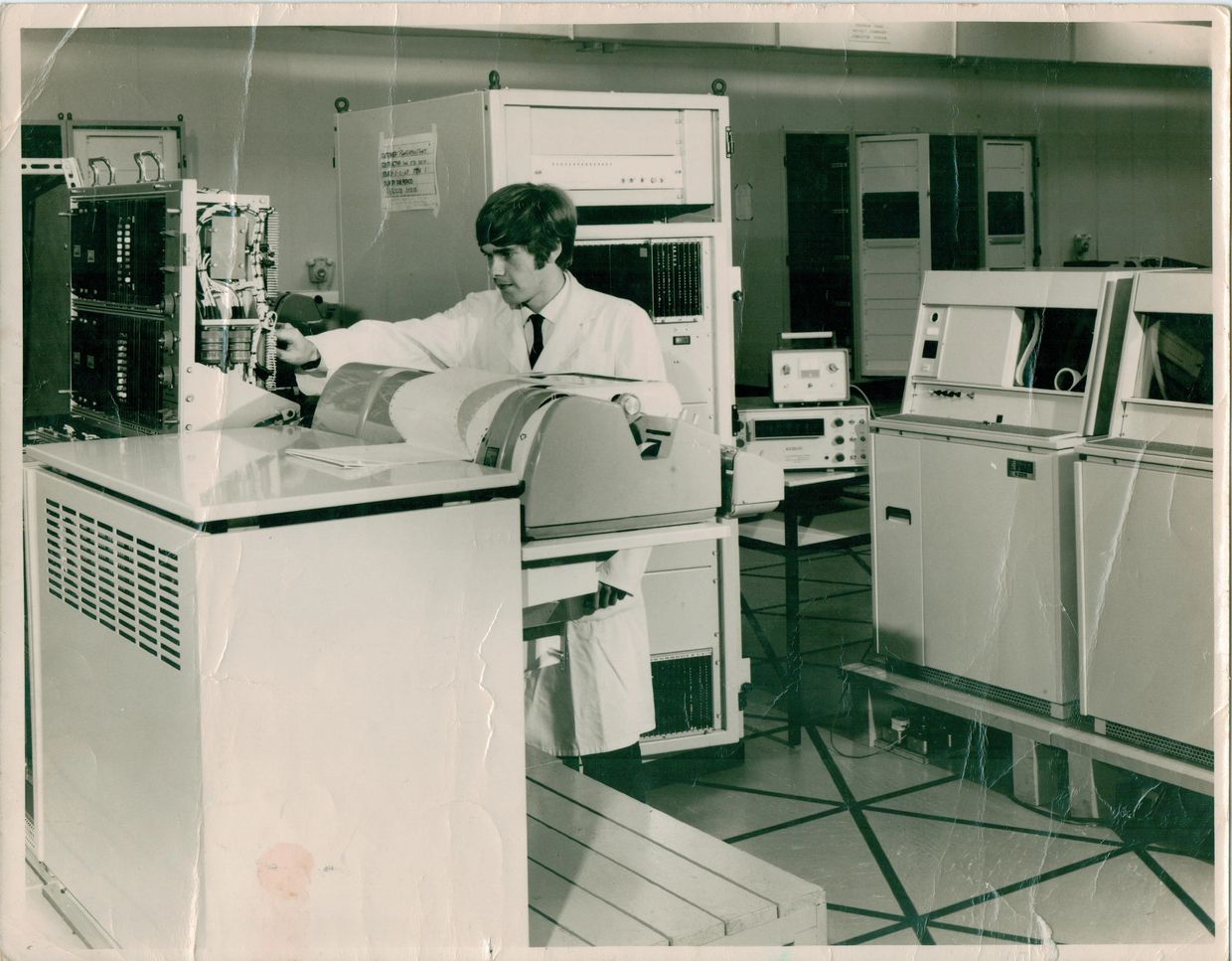 Upon completing my apprenticeship I was offered a position as a Test Engineer in the Kidsgrove GEC Elliott Automation factory.The photograph above taken in 1970 shows me in the systems test area testing a GEC M2140 computer system