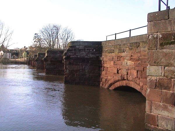 An ancient bridge over the river Dee separating England and Wales. Floods regularly in the Winter months.
